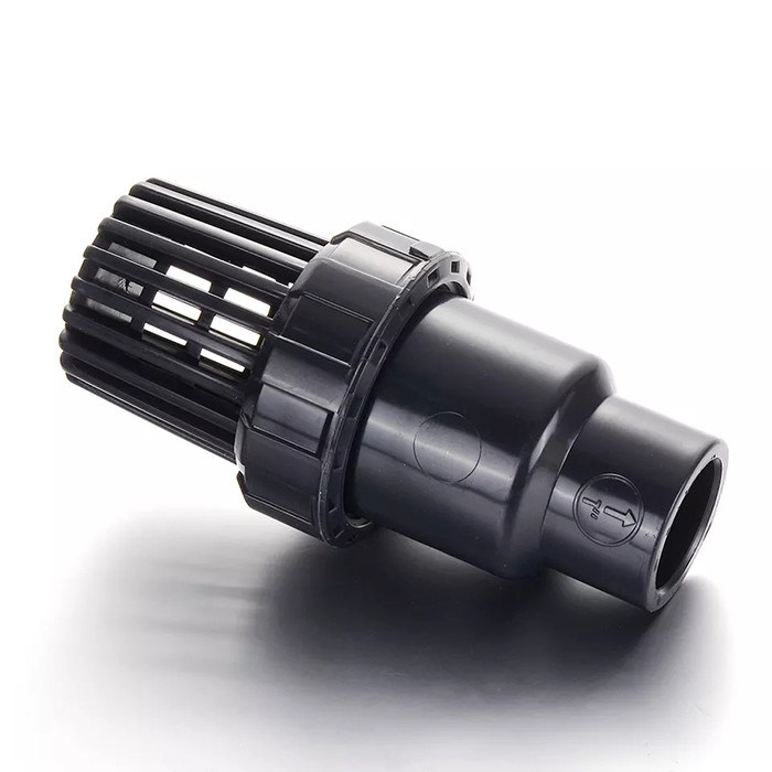La valve du fond de PVC, également connue sous le nom de clapet anti-retour, est une valve plate à basse pression. Sa fonction est de s'assurer que les écoulements liquides dans une direction dans le tube d'aspiration, de sorte que la pompe puisse fonctionner normalement. Quand la pompe cesse de fonctionner par intermittence pendant une courte période, le liquide ne peut pas retourner au réservoir de source d'eau. Assurez-vous que le tube d'aspiration est rempli de liquide pour faciliter le début de la pompe.